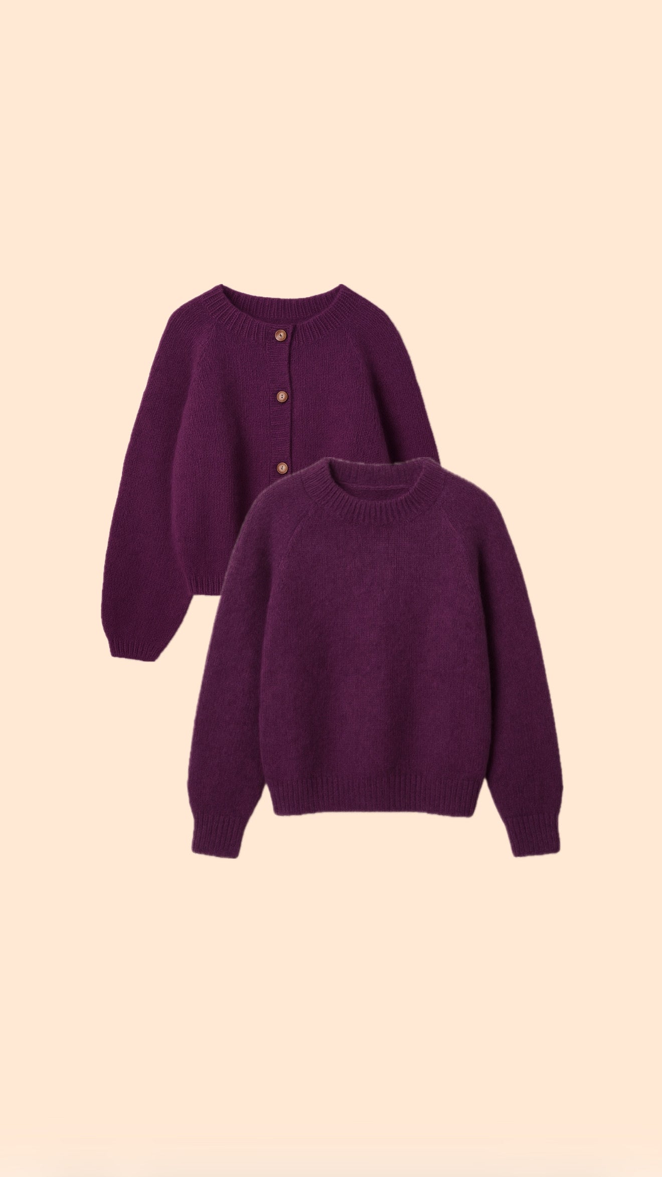 Die Farbe vereint das Beste aus zwei Welten: die Ruhe des Blaus und die Wärme des Rots. Dadurch wirkt die Farbe sowohl ausgleichend als auch kraftvoll. Sie hat eine gewisse Mystik, bleibt aber tragbar und modern – egal, ob in Form eines kuscheligen Strickpullovers, eines Cardigans oder als Akzentfarbe in Accessoires.